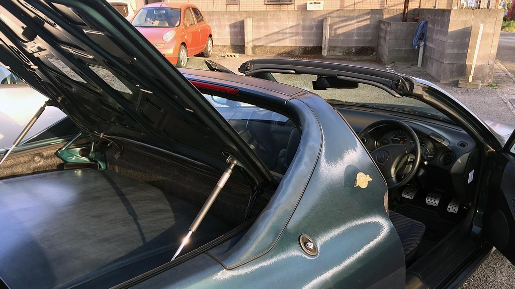 また、トランストップは、トランクのラゲッジスペースに制約があり、トランストップ機構で半分ほどスペースが支配される他に荷物の高さ制限もあり、実用性は間違いなくマニュアルトップの方が勝ります。